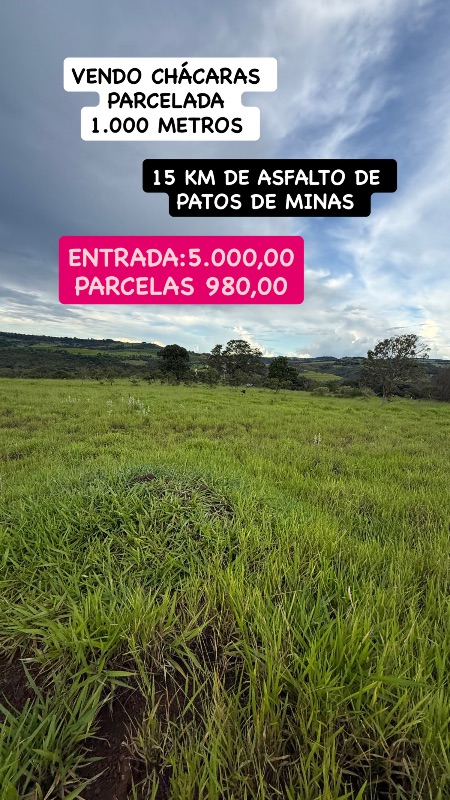 Patos de Minas - Centro - Vendo Chácaras Parceladas – Próximo a Patos de MinasChácaras de 1.000 m², com água e luz, localizadas na região do Barreiro, próximo à Baixadinha e à Serrinha.📍 Apenas 10 km de Patos de Minas➡️ Sendo 6 km de asfalto e 4 km de estrada de terra.💰 Condições de Pagamento: • Entrada: R$ 15.000,00 • 100 Parcelas fixa de R$ 800,00 • Ou R$ 70.000,00 à vista📱 Contato WhatsApp: 34 99161-3185
