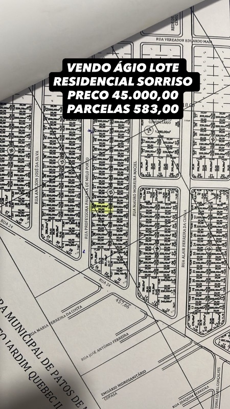 Patos de Minas - Residencial Sorriso - Lote residencial sorriso 200 metros 90.000,00 aceita financiamento ou agio 45.000,00 mais 84 parcelas de 536,00 📱ZAP 991613185